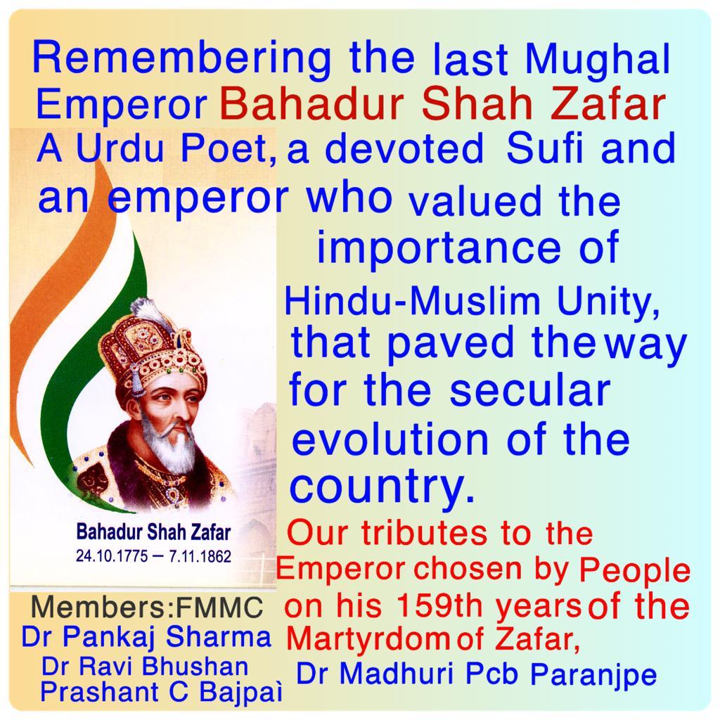 Remembering the last Mughal Emperor Bahadur Shah Zafar (24-10-1775 to 7-11-1862) on his “159th Anniversary of his Martyrdom
