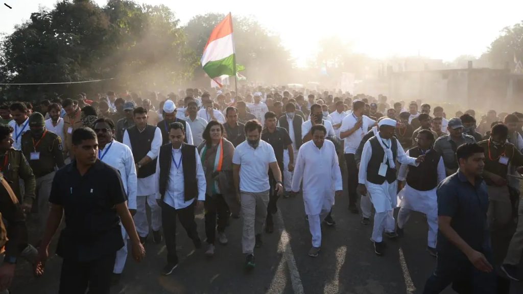 कांग्रेस की भारत जोड़ो यात्रा तमिलनाडु के कन्याकुमारी से शुरू होकर केरल, कर्नाटक, आंध्र प्रदेश, तेलंगाना और महाराष्ट्र राज्यों से होते हुए मध्य प्रदेश पहुंची है।