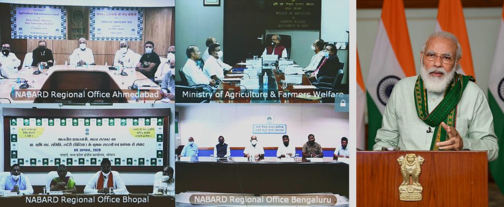 मोदी ने आगे कहा आज जो Agriculture Infrastructure Fund Launch किया गया है, इससे किसान अपने स्तर भी गांवों में भंडारण की आधुनिक सुविधाएं बना पाएंगे।इस योजना से गांव में किसानों के समूहों को, किसान समितियों को, FPOs को वेयरहाउस बनाने के लिए, कोल्ड स्टोरेज बनाने के लिए, फूड प्रोसेसिंग से जुड़े उद्योग लगाने के लिए 1 लाख करोड़ रुपए की मदद मिलेगी।ये जो धन किसानों को उद्यमी बनाने के लिए उपलब्ध कराया जाएगा, इसपर 3 प्रतिशत ब्याज की छूट भी मिलेगी।थोड़ी देर पहले ऐसे ही कुछ किसान संघों से मेरी चर्चा भी हुई। जो सालों से इस किसानों की मदद कर रहे हैं।इस नए फंड से देशभर में ऐसे संगठनों को बहुत मदद मिलेगी।