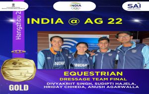 India secured three gold so far at the Asian Games 2023 in Hangzhou, China. This brings the overall medal tally for the country to 15 medals – 3 gold, 5 silver, and 7 bronze. In Equestrian Dressage Team event, the quartet of Hriday Chheda, Anush Agarwalla, Sudipti Hajela, and Divyakriit Singh scored 209.205 points to win the gold against China yesterday.