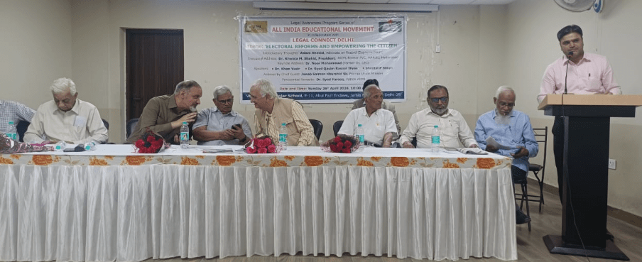 Aslam Ahmed, Advocate on Record at the Supreme Court, shared his views on electoral reforms happening in other countries while moderating the stage. AIEM General Secretary Abdul Rashid welcomed the guests, followed by Advocate Zahid Akhtar Falahi, who introduced ‘Legal Connect Delhi’.