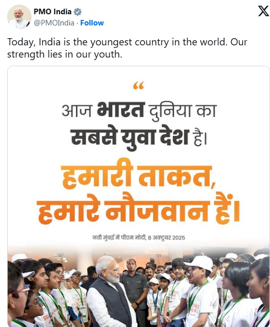 “India is the youngest country in the world, and its strength lies in its youth”, exclaimed the Prime Minister, emphasising that every government policy is focused on creating maximum employment opportunities for young people.